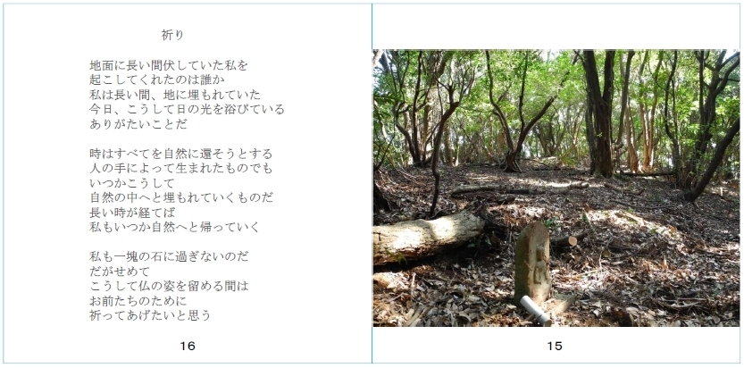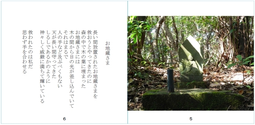 長い間放置されたお地蔵さまを救おうとやってきたのに、森の中で木の葉に埋まったお地蔵さまには木の間から日の光が差し込んでいてそれはまるで人の手など及ぶべくもない