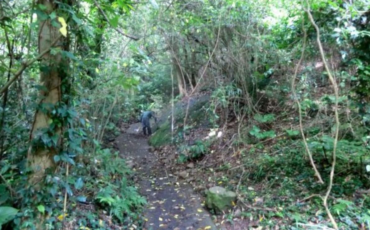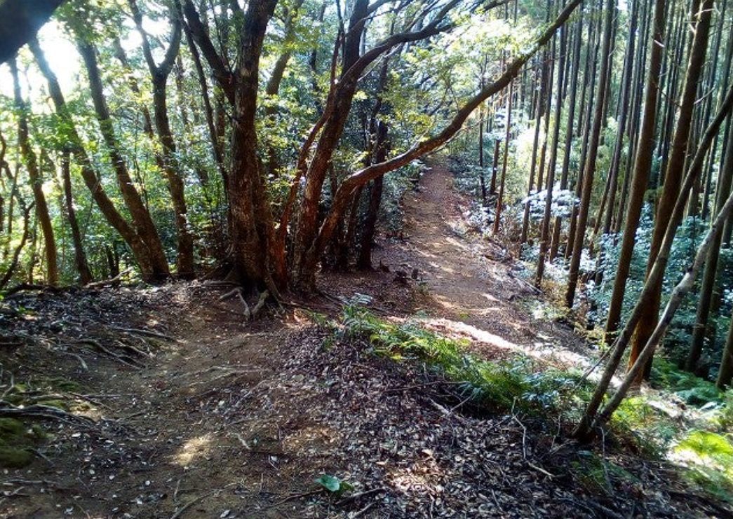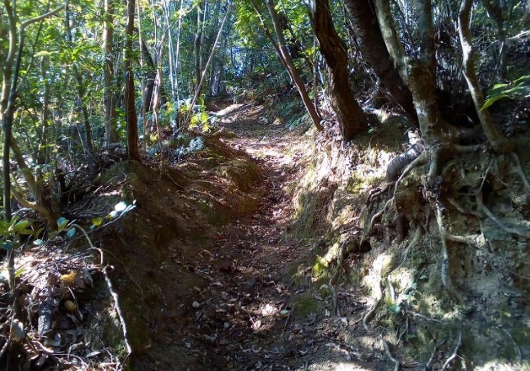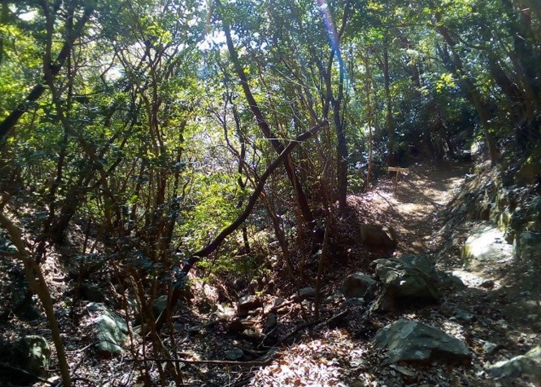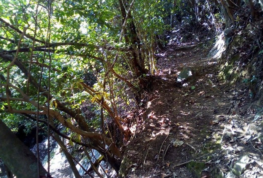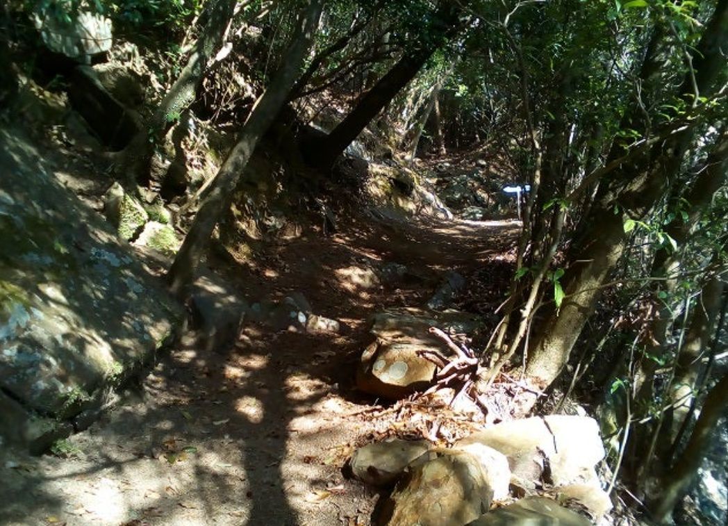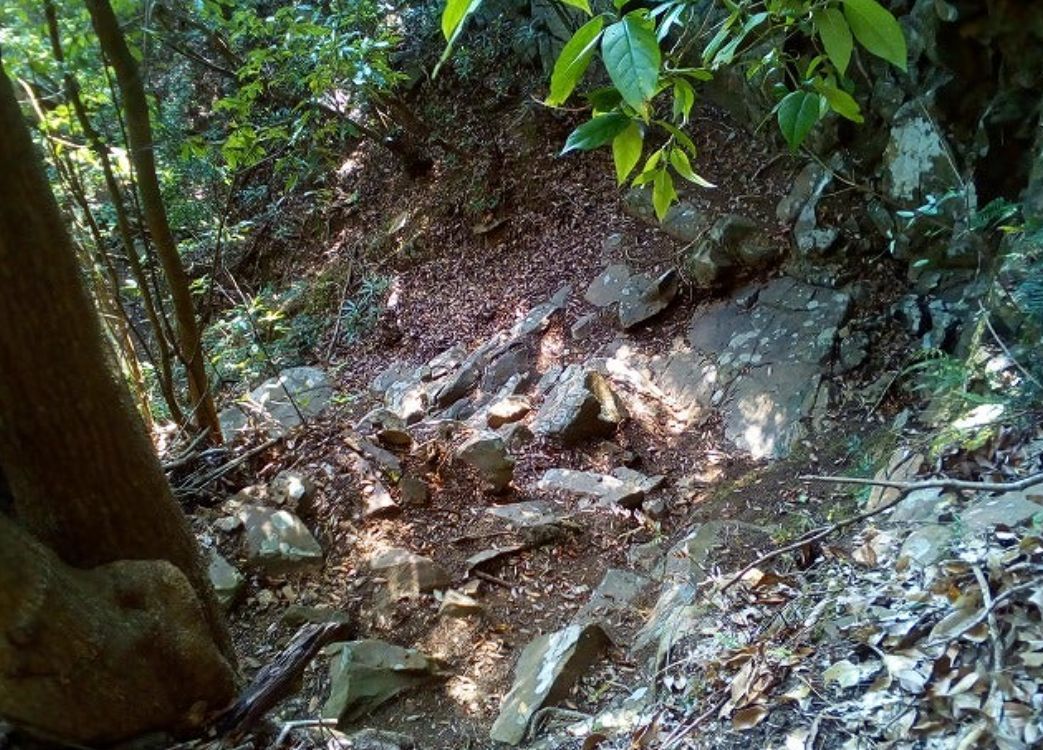 最初に上ってからすぐのところは大きな石がゴロゴロして左は急斜面です